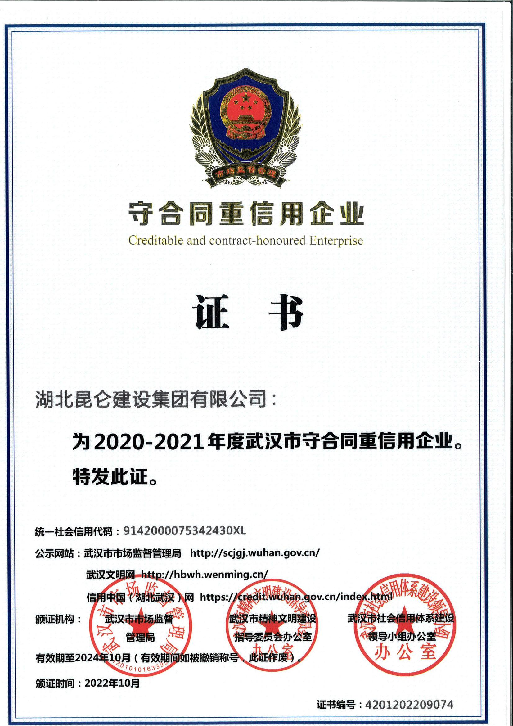 • 2020-2021年度武漢市守合同重信用企業
